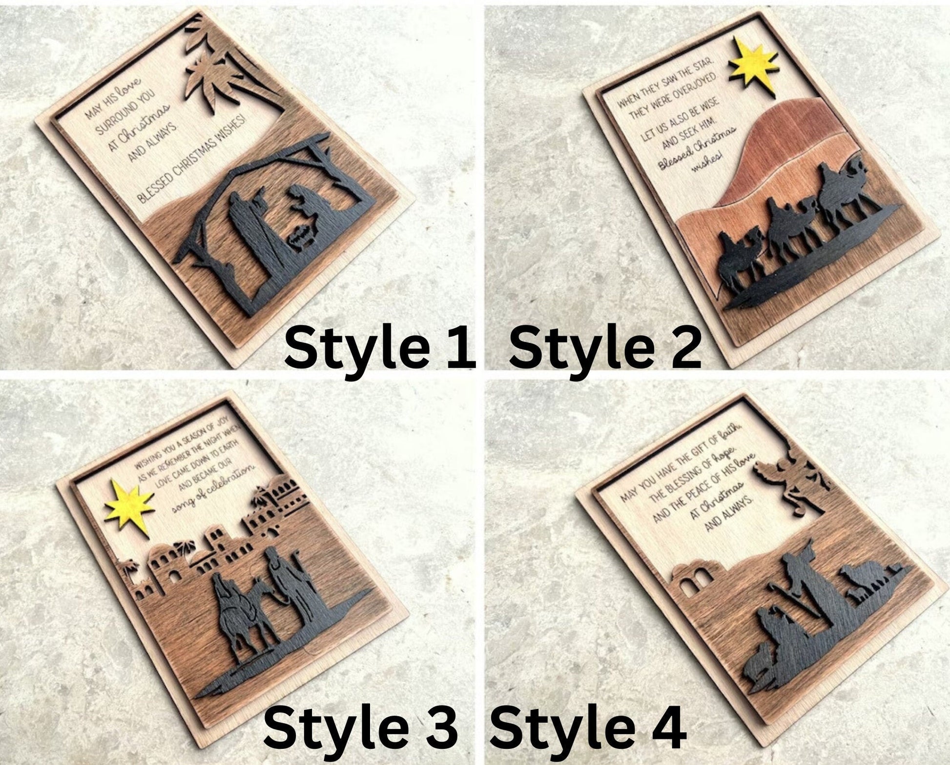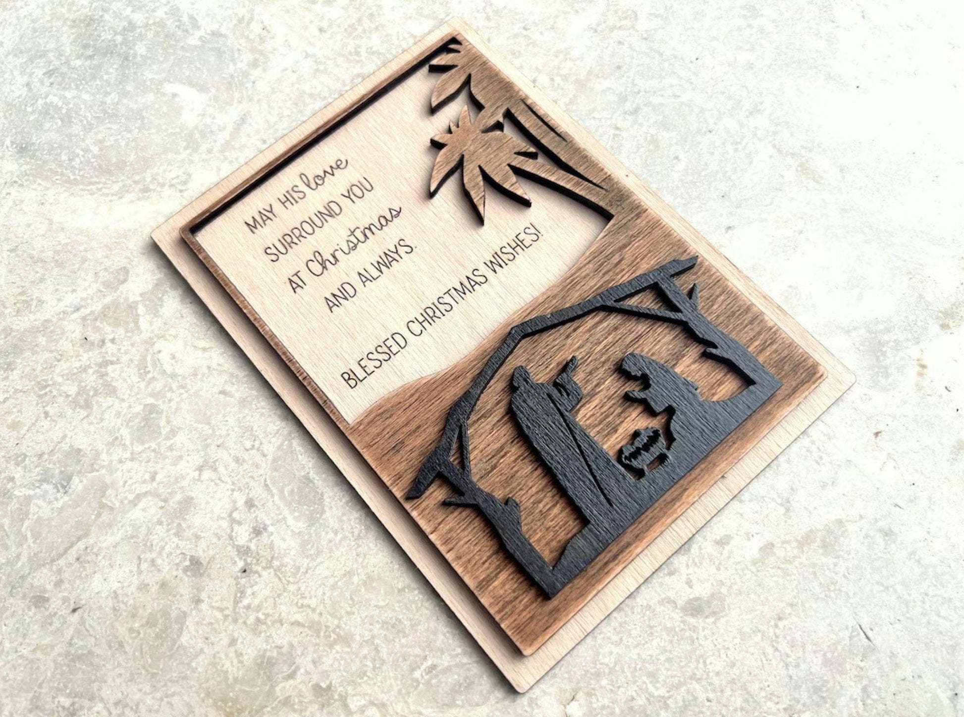 3D Laser Cut Nativity Wooden Unique Christmas Cards, Handmade Family Christmas Holiday Cards, Christmas Greeting Cards,