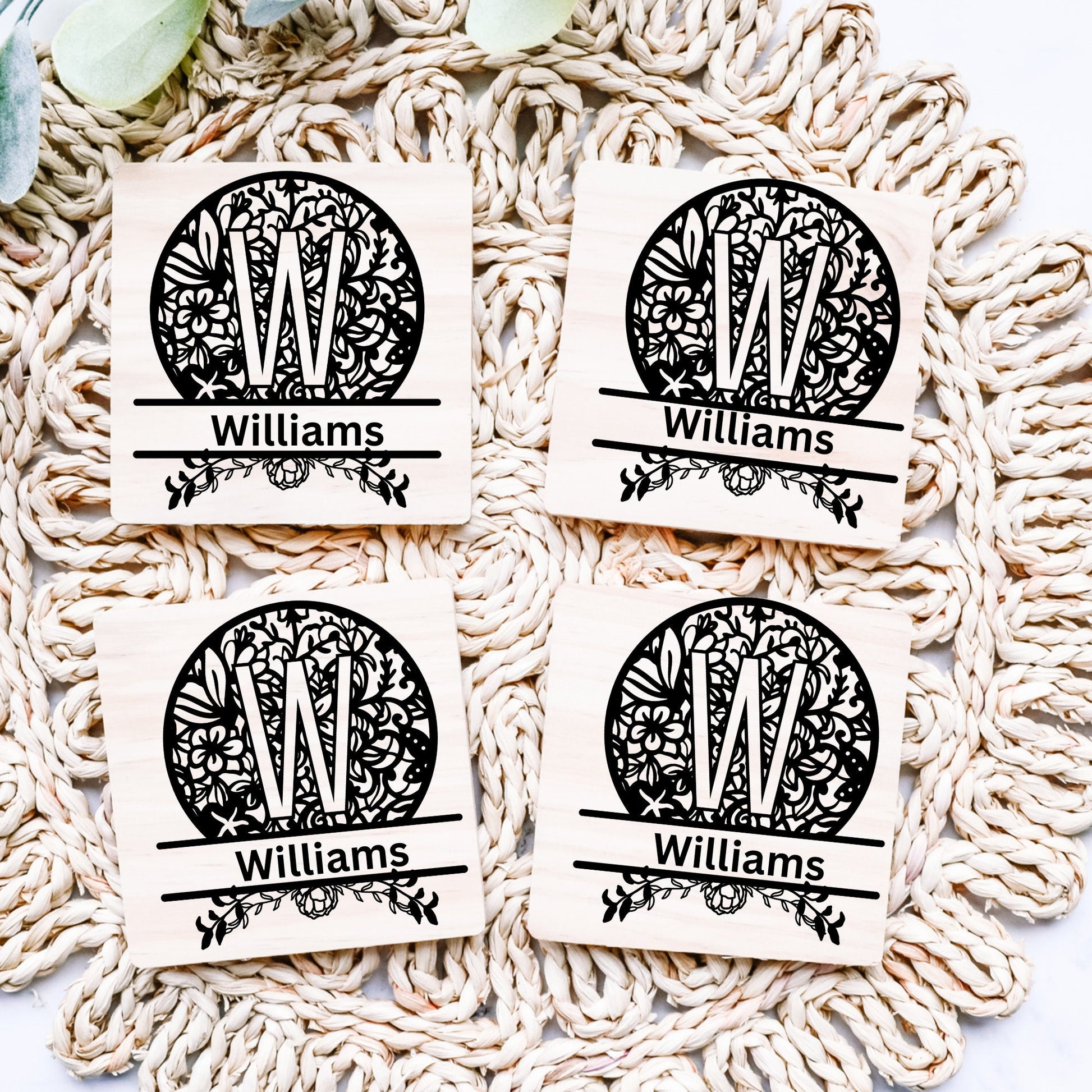 Laser Cut Mandala Custom Coasters Set Of 4 Wedding Coasters, Laser Engraved Coasters, Personalized Wood Coasters, Drink Coasters