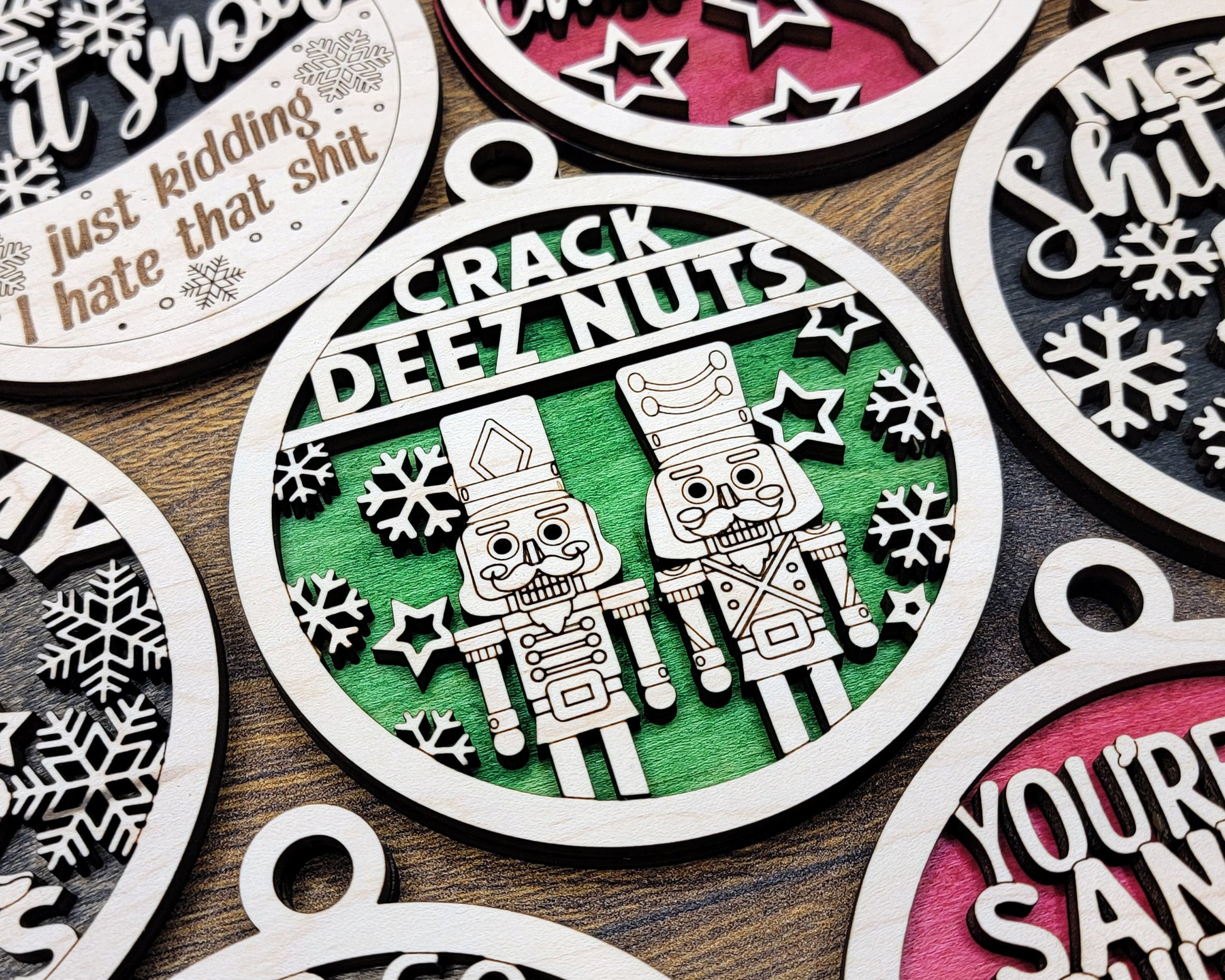 Naughty But Funny Christmas Ornaments, Handmade Laser Engraved Christmas Ornaments, Unique Wooden Christmas Ornaments