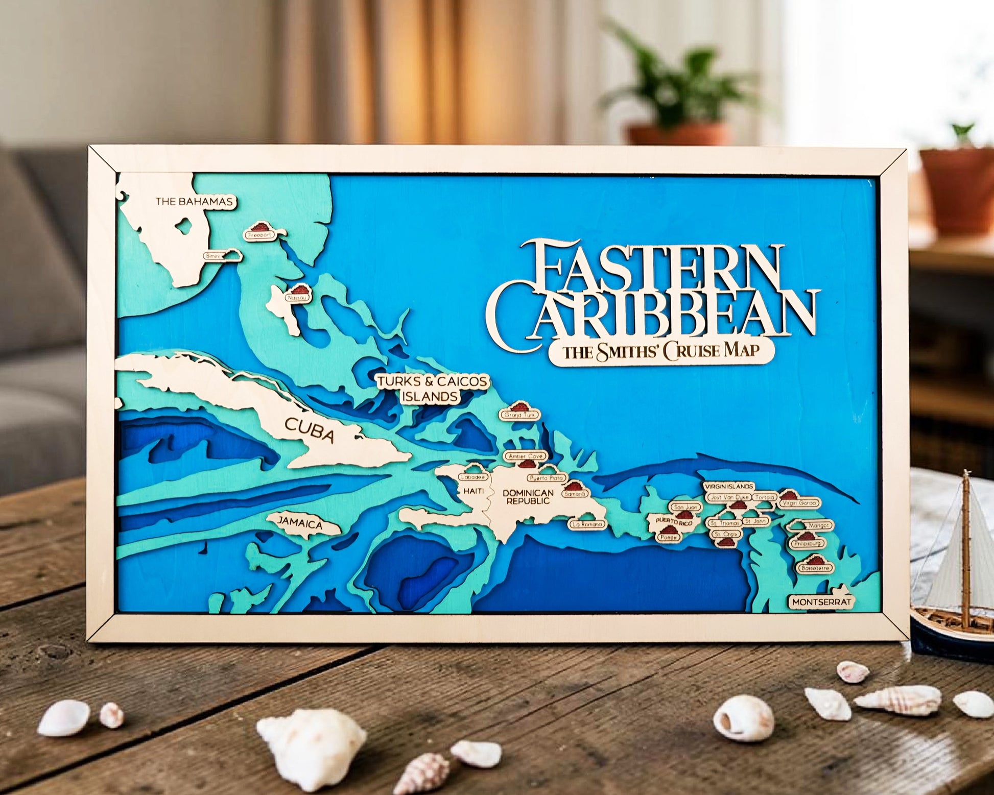 Personalized Eastern Caribbean Cruise Map – Layered Wood Wall Art